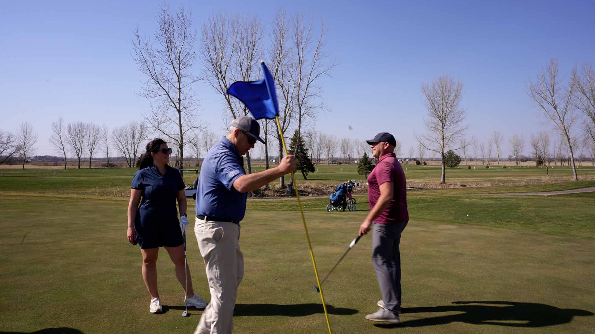The goal for our three-person scramble was a 36. Between Shawn's "laser" shots, Bridgette's concentration on the green, and some solid teamwork, we managed to finish three under through nine holes.